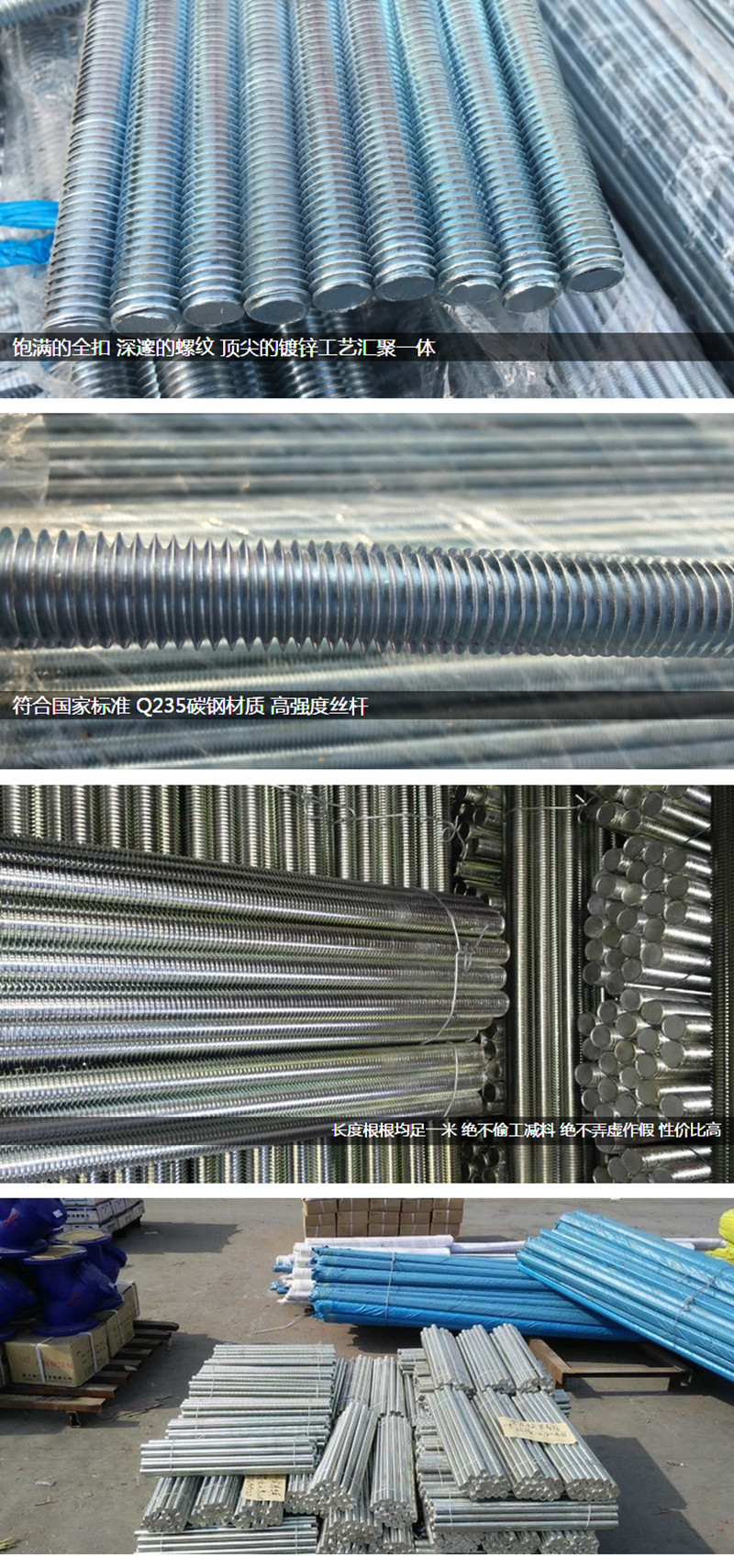 4.8級(jí)鍍鋅全螺紋絲桿 8.8級(jí)高強(qiáng)度絲桿/牙條/全牙螺桿/通絲1米長(zhǎng)M4-M30系列 【白鋅】M8*1米