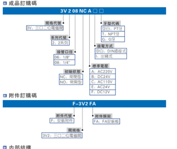 亞德客(AIRTAC)氣動元件電磁閥3通3V1,3V2,3V3系列