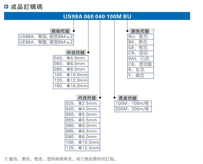 亞德客(AIRTAC)氣動元件氣管PU管US98A系列