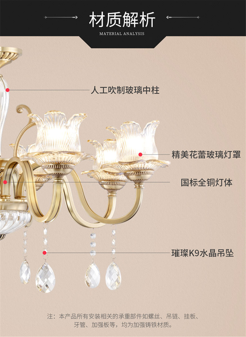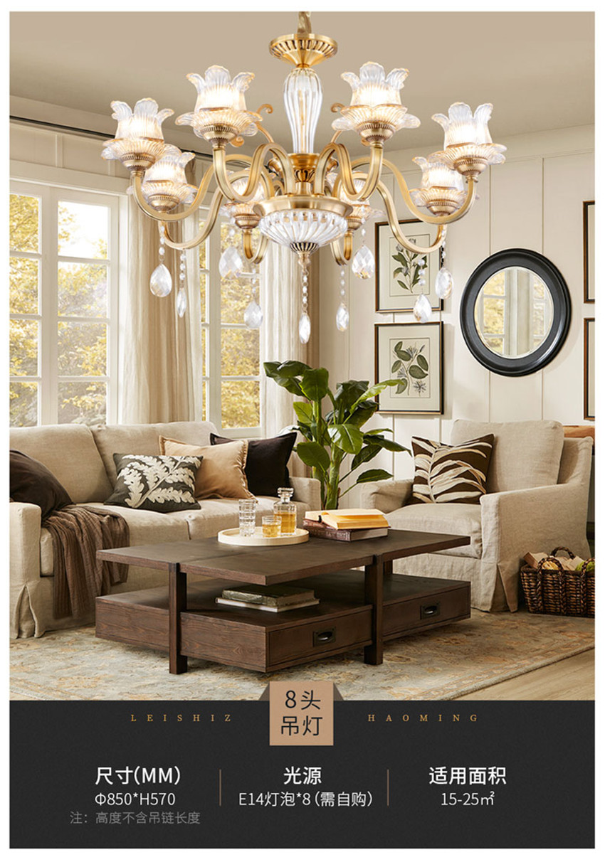 雷士法式輕奢后現(xiàn)代水晶全銅臥餐客廳吊燈
