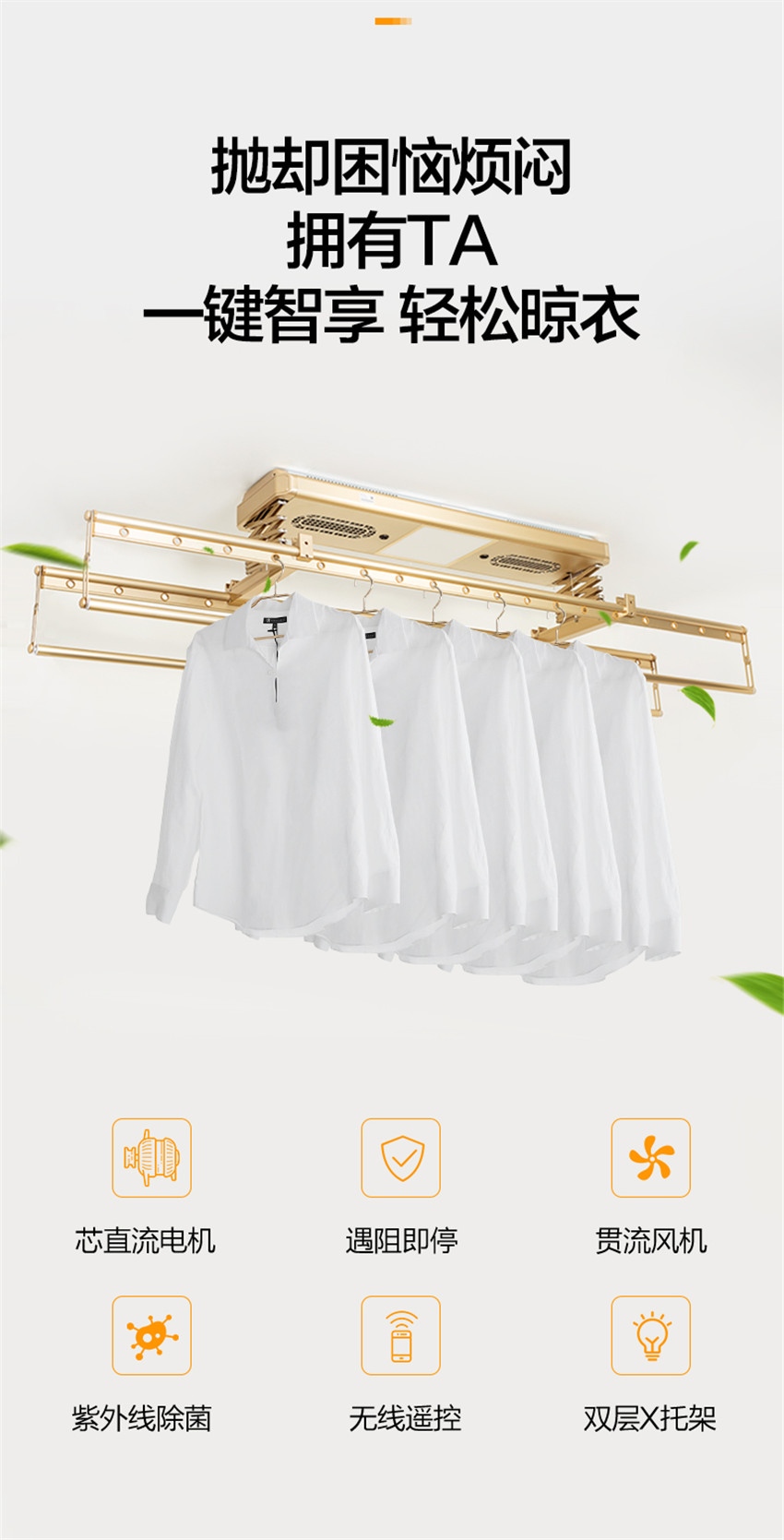 JOMOO九牧 雙層X托架智能靜音升降晾衣架紫外線殺菌 LA403