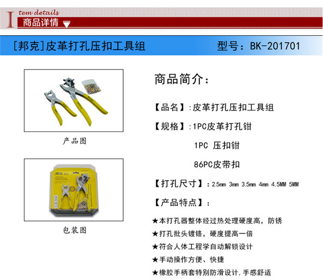 邦克兩件套皮帶打孔鉗打圓器打孔沖