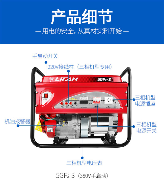 力帆汽油發(fā)電機220V 家用小型迷你單相三相