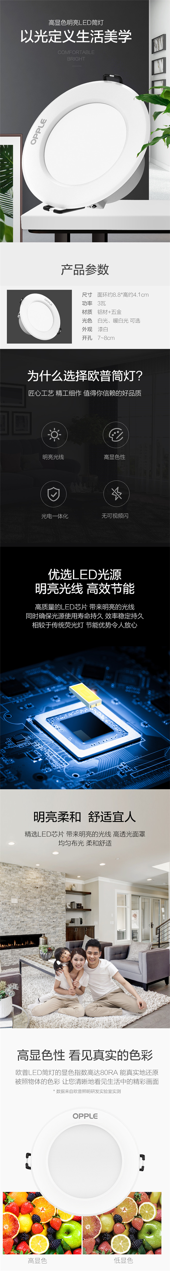 歐普照明(OPPLE)led筒燈3W超薄桶燈客廳吊頂天花燈過(guò)道嵌入式孔燈牛眼燈 白光漆白開孔7-8厘米【鋁材款】