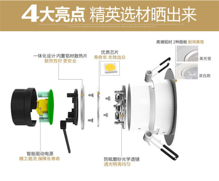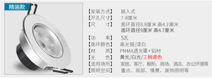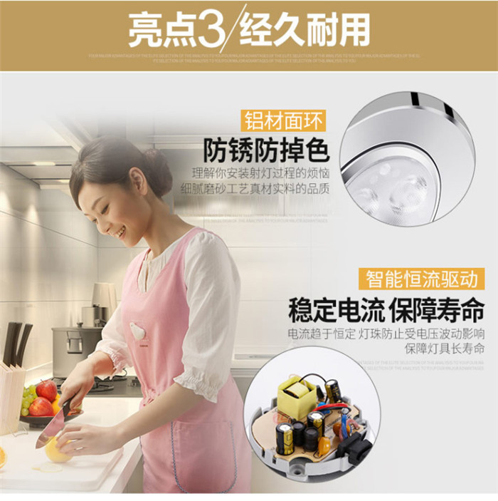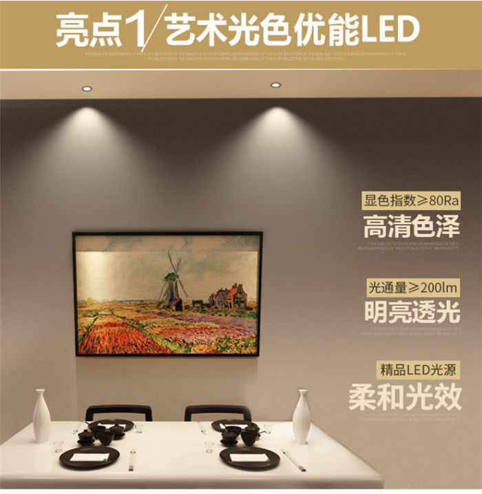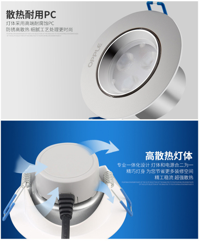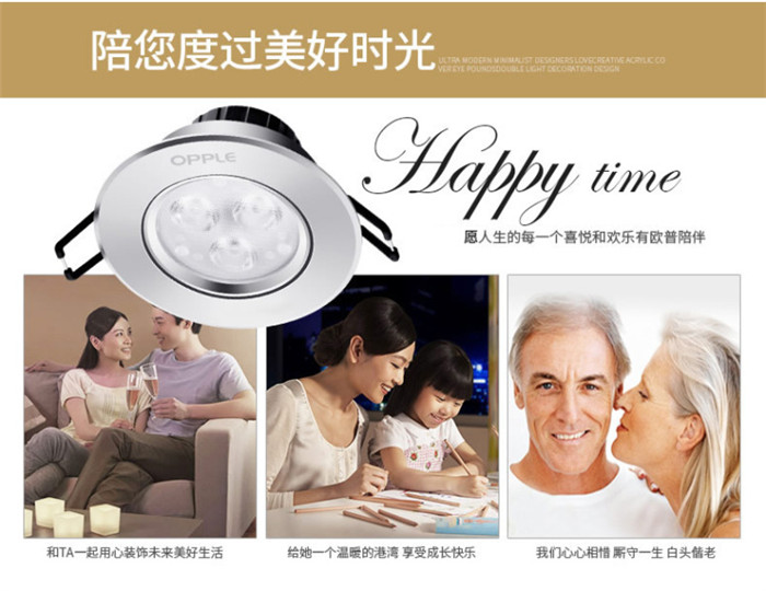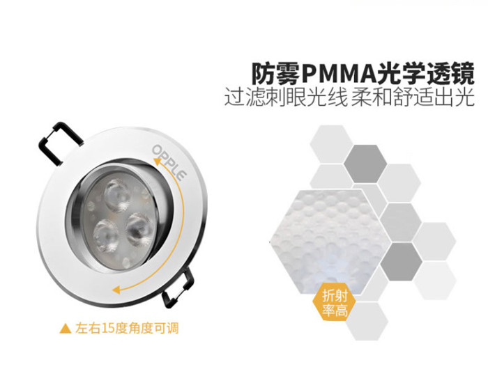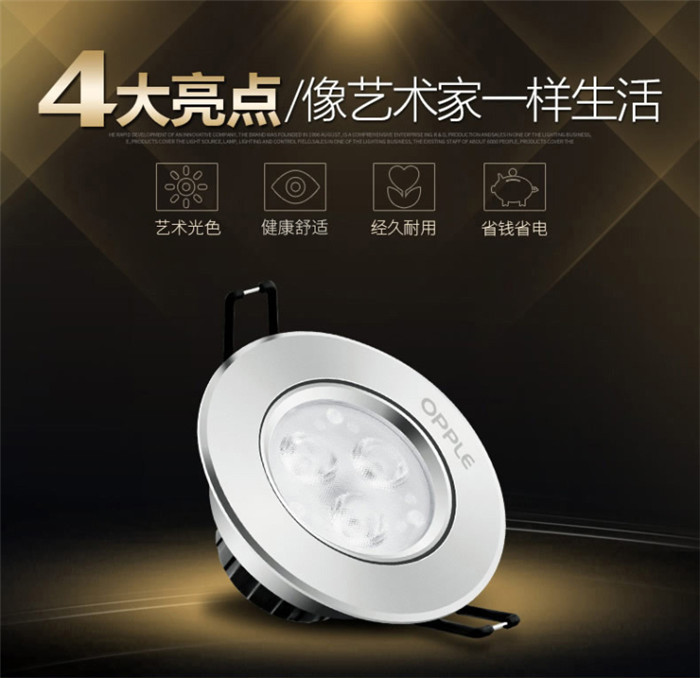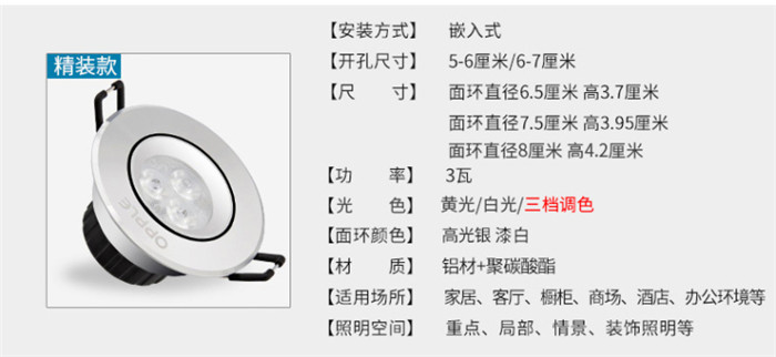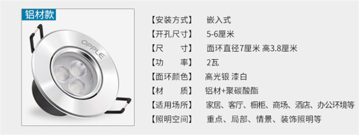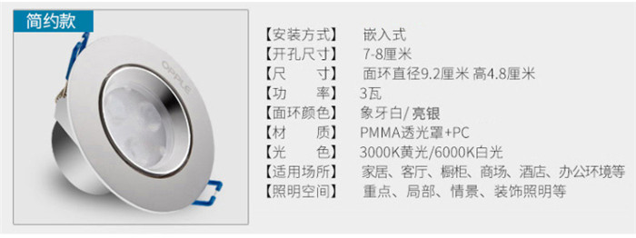 歐普照明LED射燈3W全套天花牛眼嵌入式過道走廊客廳孔燈 象牙白3瓦白光 開孔7-8cm