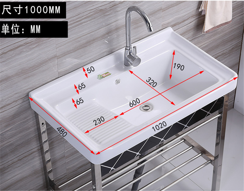 洗手盆帶搓板陽臺(tái)超深洗衣槽陶瓷洗衣盆不銹鋼支架臺(tái)