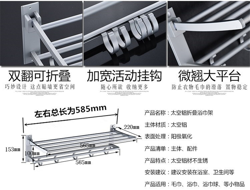 加厚免打孔太空鋁合金浴室折疊浴巾架 衛(wèi)生間毛巾架