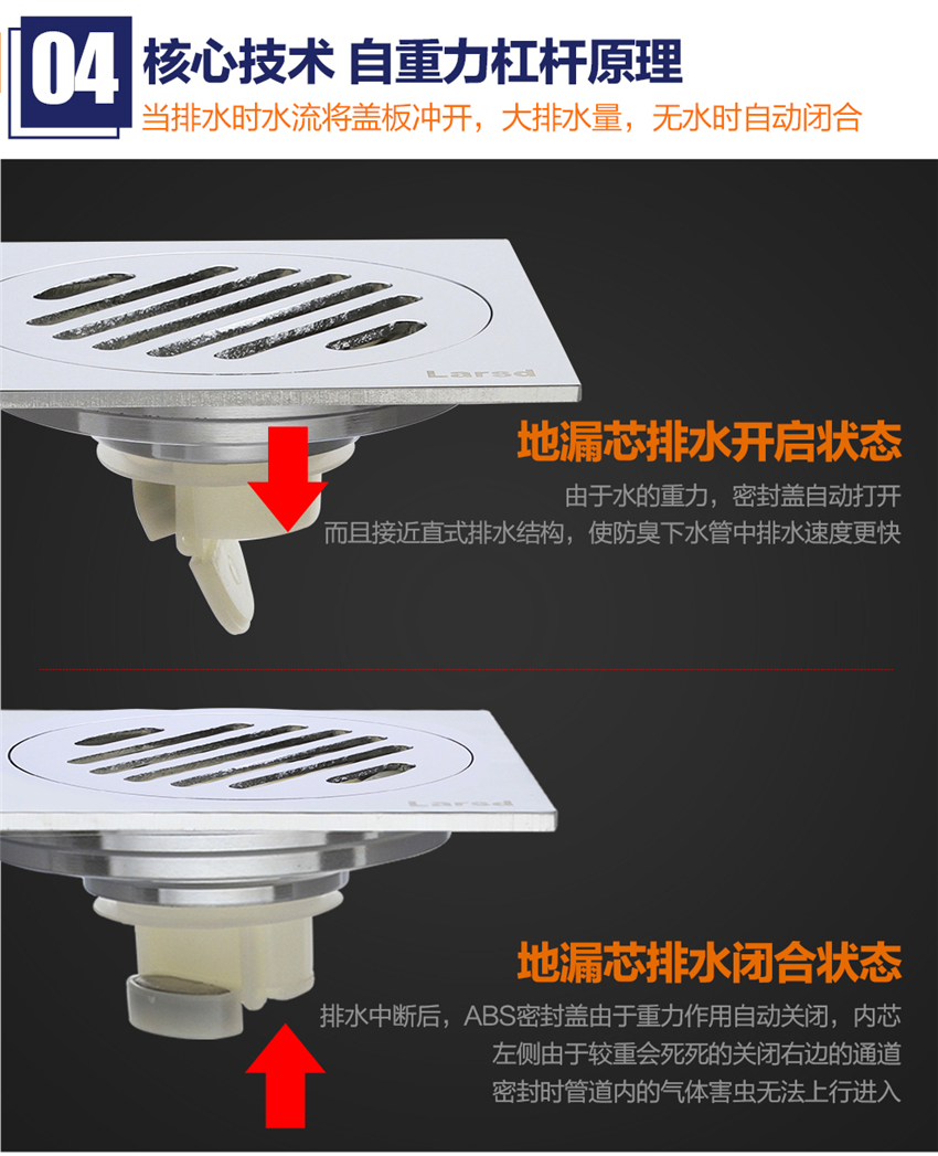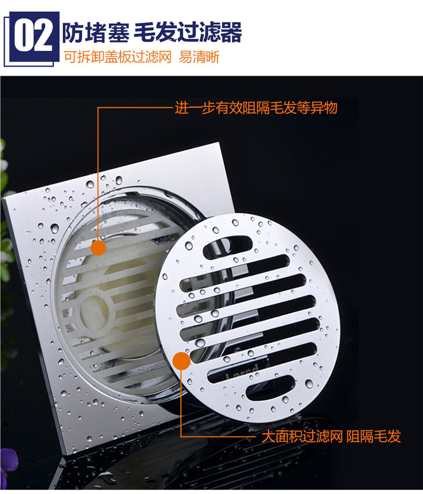 高效防臭地漏 超薄大流量全銅自動密封式地漏