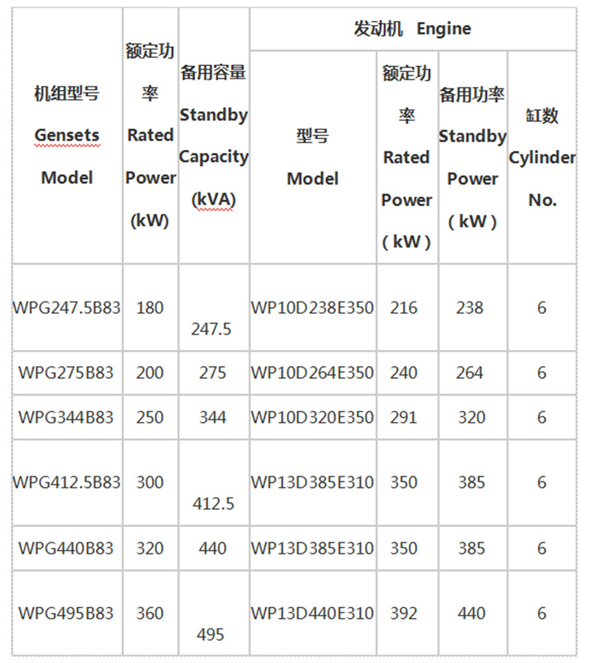 247.5KVA-495KVA發(fā)電機(jī)組WP10/WP13產(chǎn)品