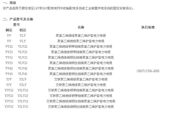 額定電壓1kV和3kV電纜