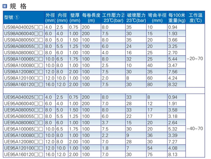 亞德客(AIRTAC)氣動元件氣管PU管US98A系列