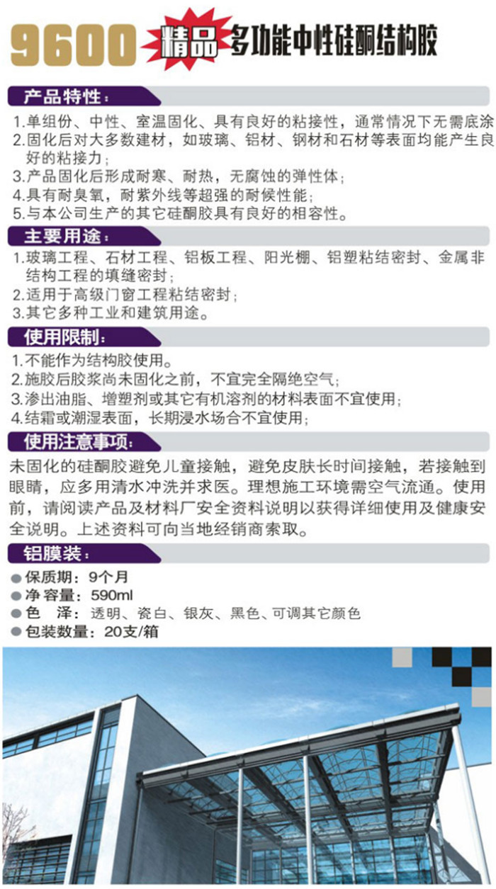 9600六尺巷精品多功能中性硅酮結(jié)構(gòu)膠