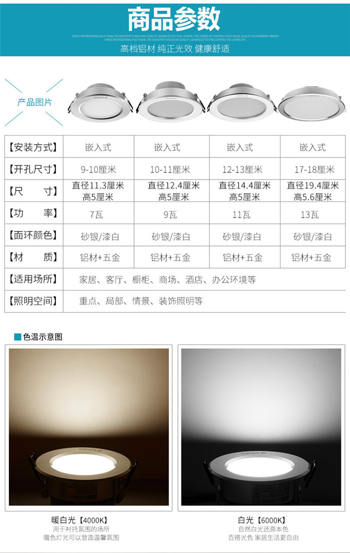 歐普led筒燈7w9公分超薄天花燈客廳吊頂燈嵌入式孔燈過道筒燈