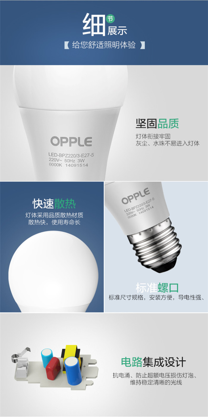 歐普照明(OPPLE) led燈泡節(jié)能大螺口家用商用大功率光源超亮E27球泡E14螺旋-XG