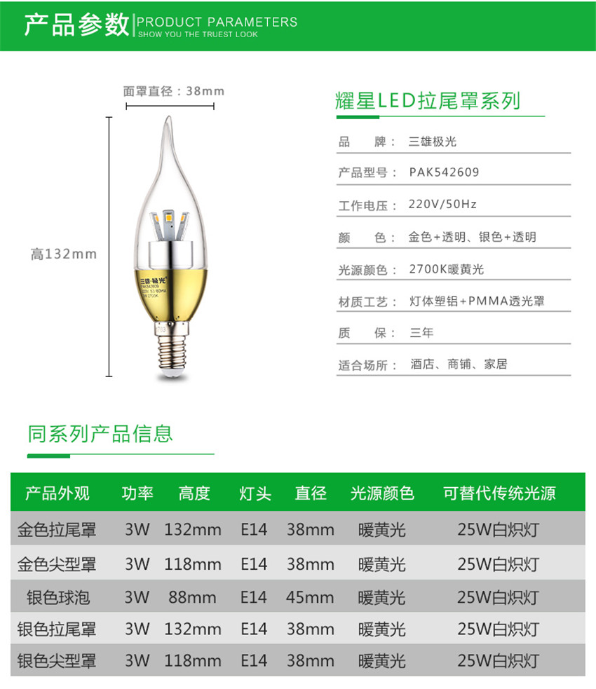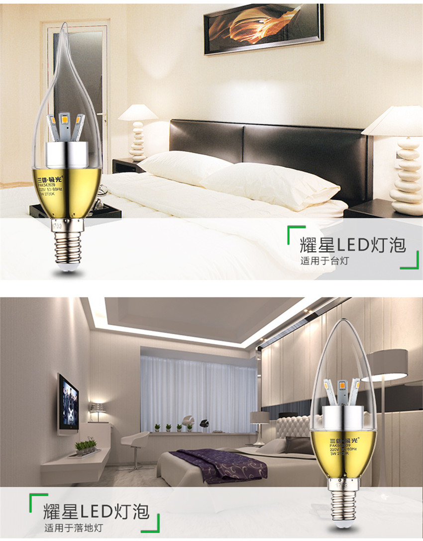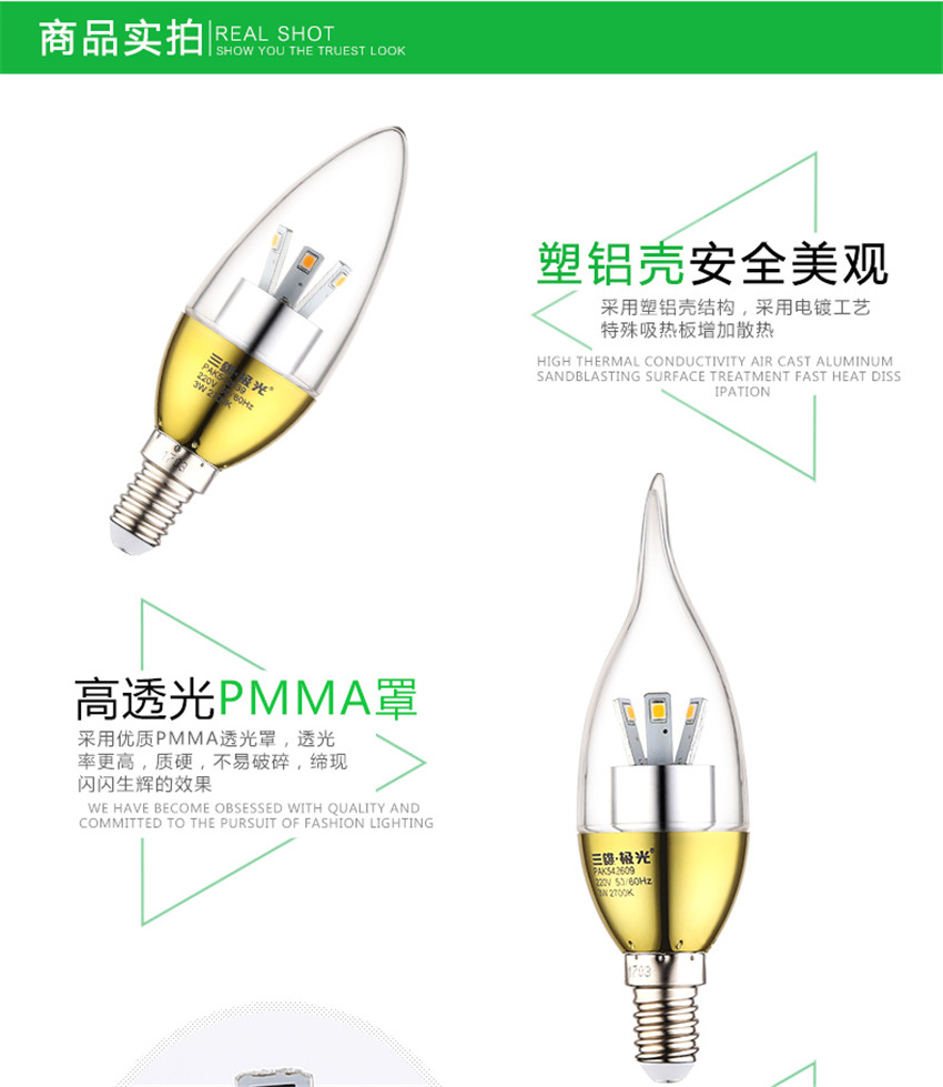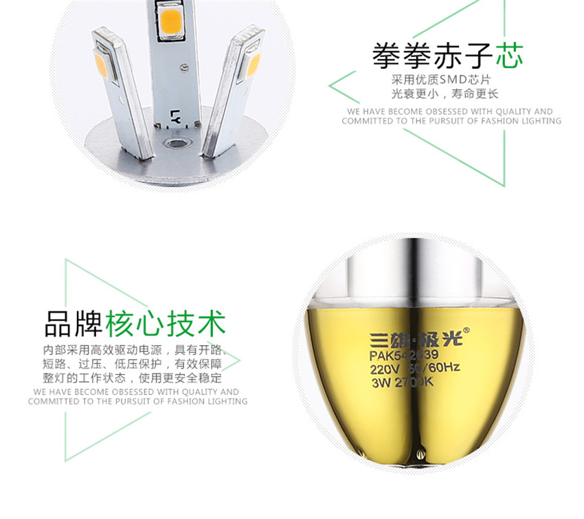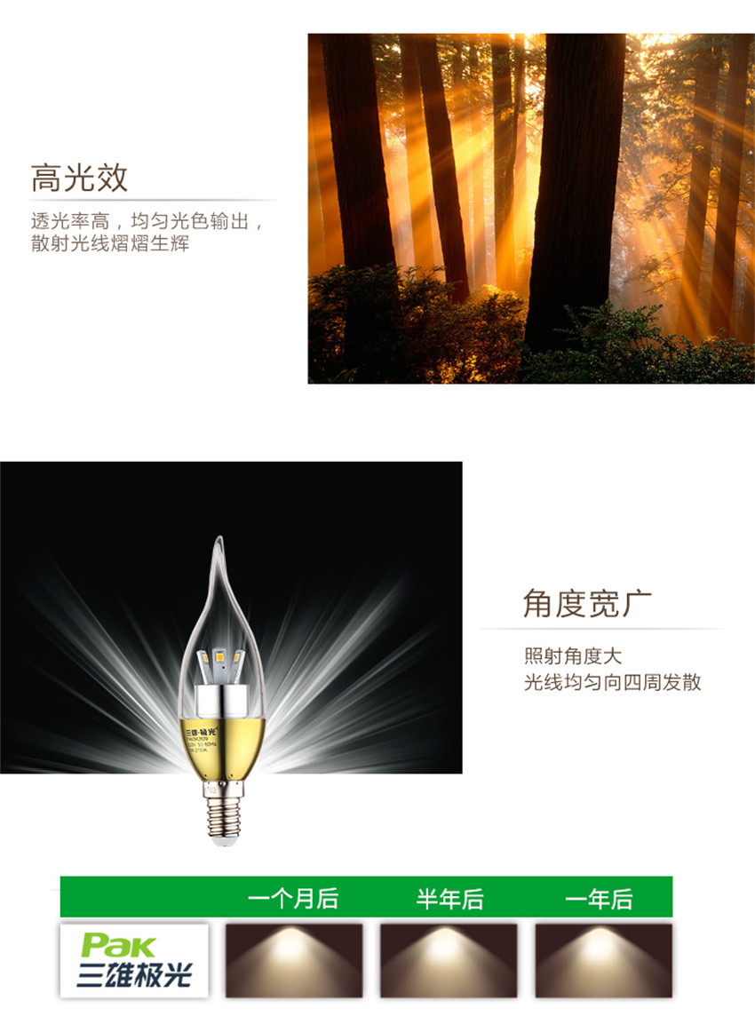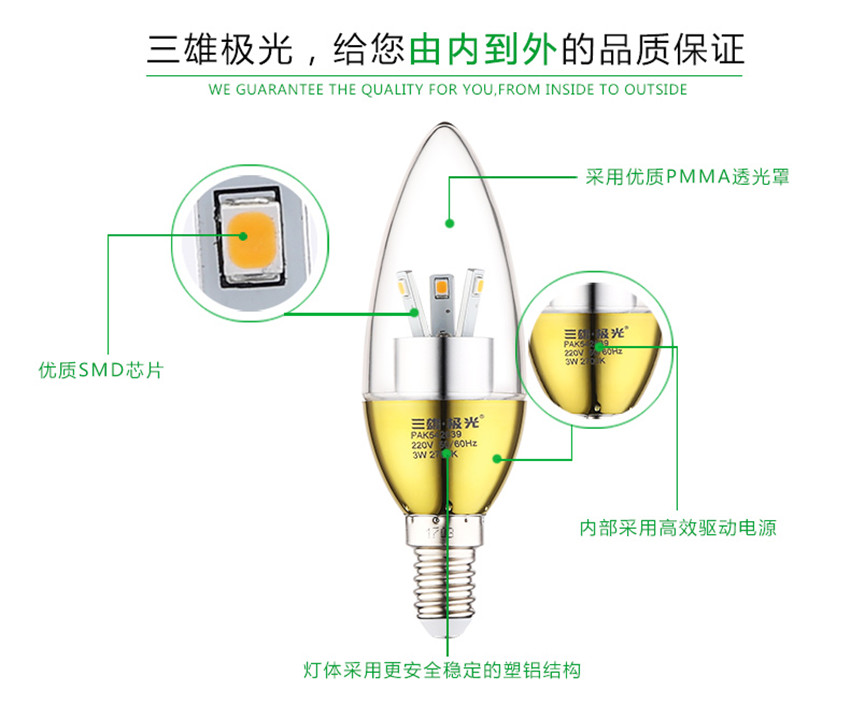 三雄極光 金色led蠟燭燈泡