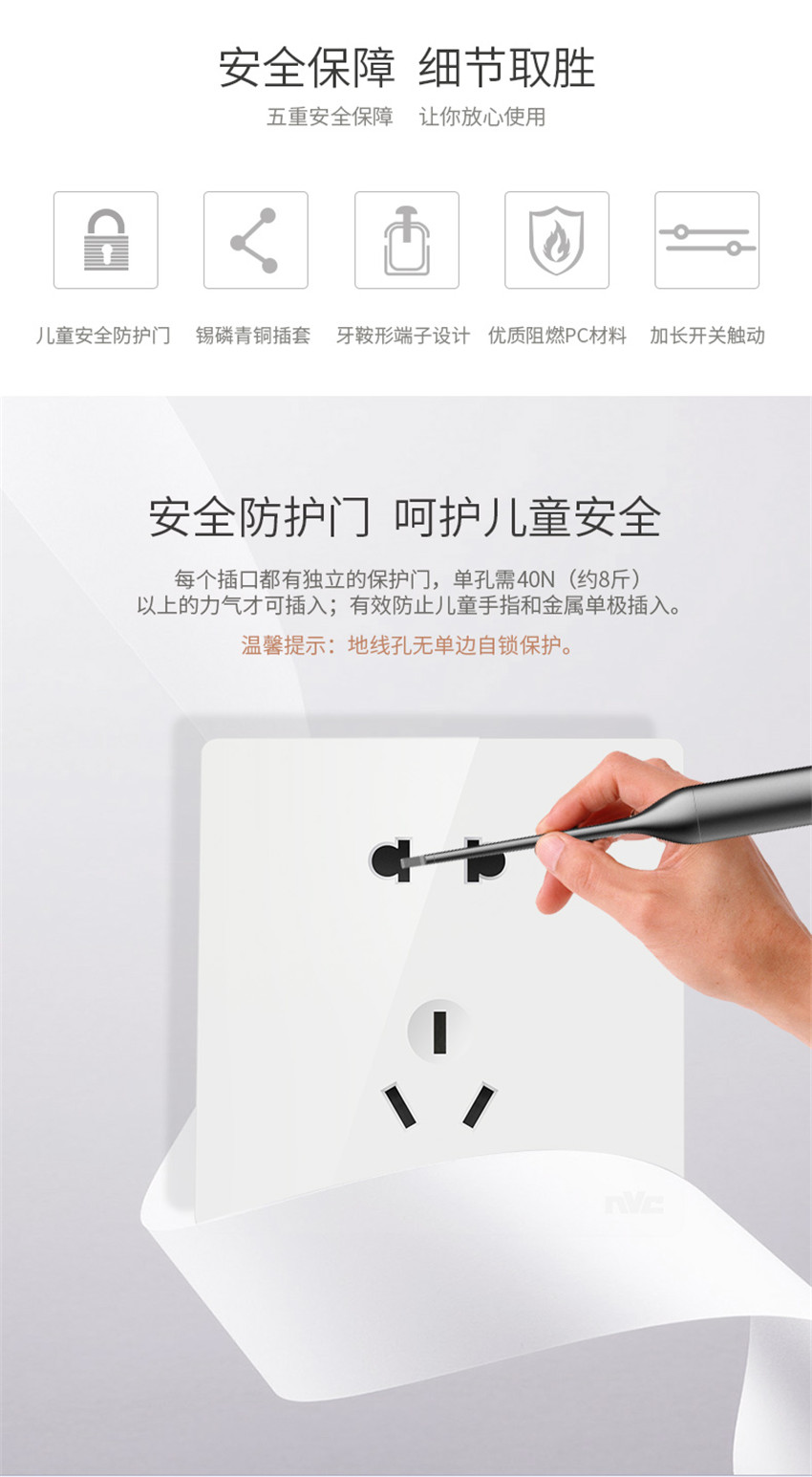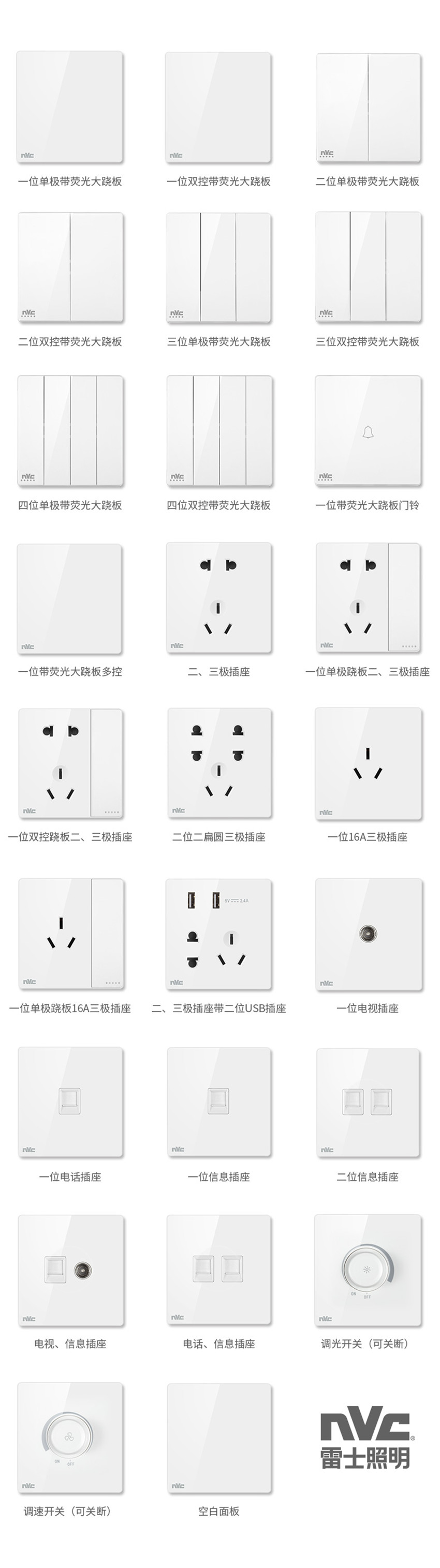 雷士照明家用暗裝墻壁二三插86型開關(guān)插座面板